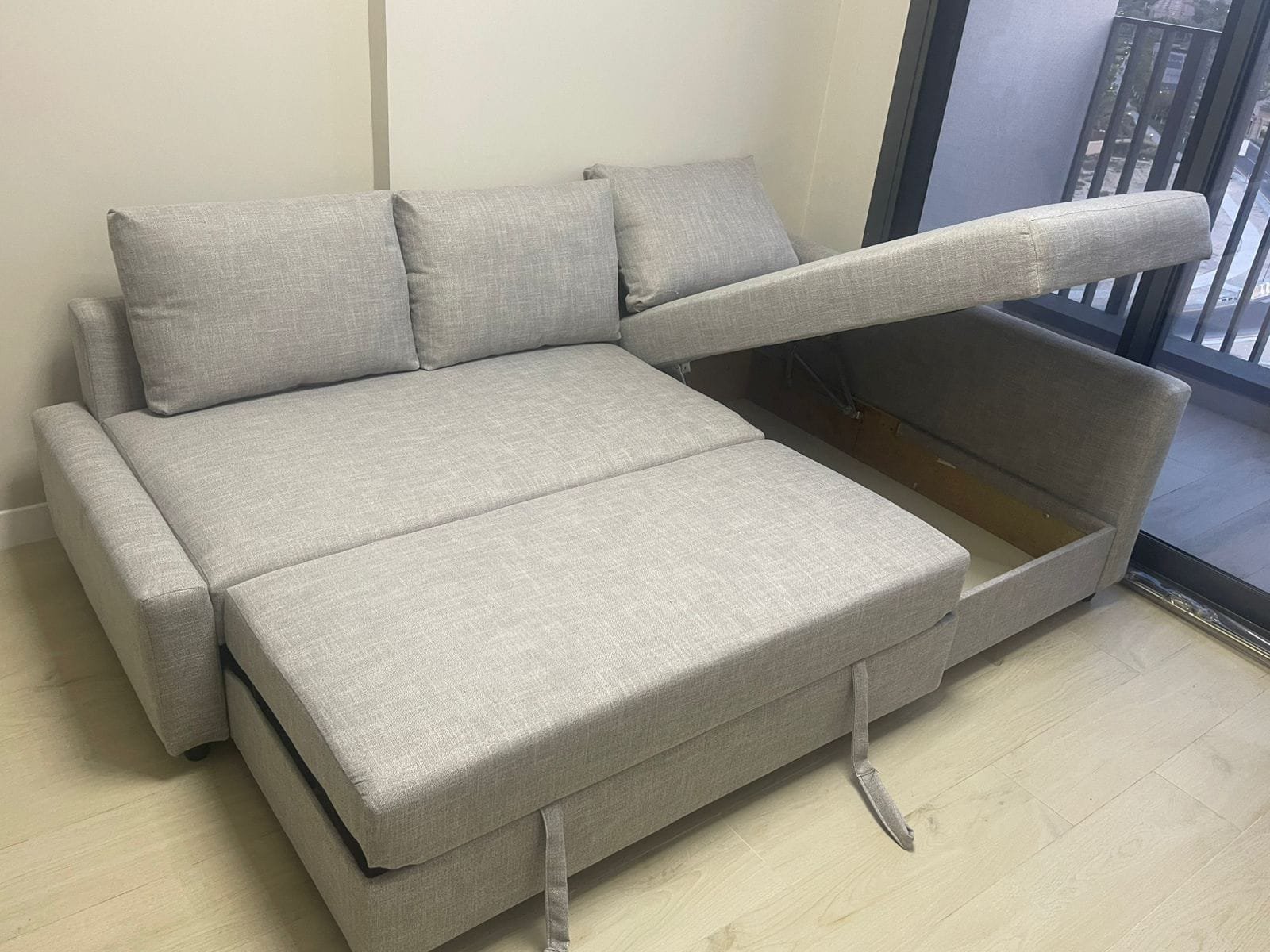 This makes the refurbished IKEA Friheten sofa-bed a practical option for families, renters, and guest rooms.